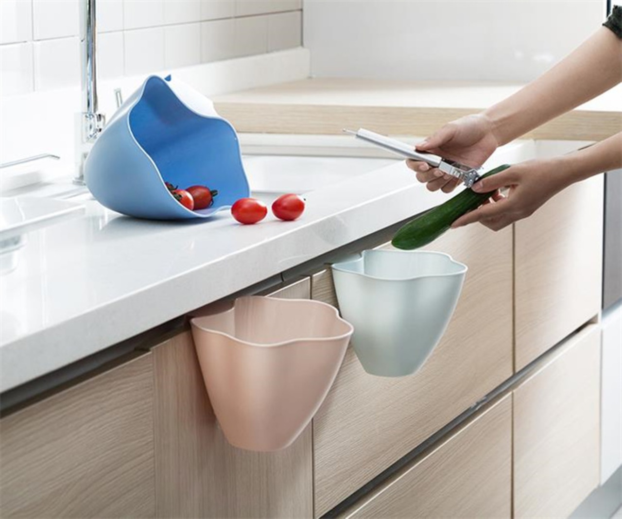 壁掛けで使いやすいセンスのいい生ごみ収集箱。シンプルでスタイリッシュなデザインで、部屋のインテリアも邪魔しません。壁やキャビネットに簡単に取り付けられるので、部屋の中をすっきりと保つことができます。3個セットで、キッチンやリビングなど使いやすい場所に複数設置できるのも便利です。